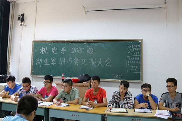 为了使宿舍内务整理工作更加高效有序地进行,机电系于9月7日13:00在主楼 108召开了军训内务整理工作汇报大会。系学生会指导老师周雨曦、团总支副书记王振国、学生会主席黄宇、副主席程皓、潘成、姜靖宇、李恒祺、徐幸及各部门部长参加本次会议。