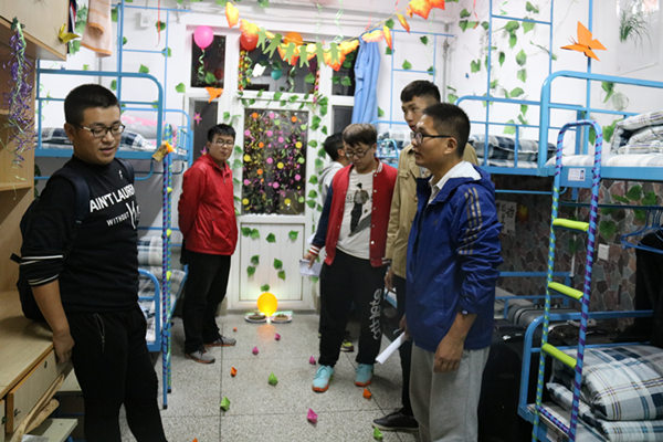 本次宿舍文化节的评选工作主要从宿舍卫生、装扮创意和整体效果三个方面进行评分。在评比过程中,评委们注重观看宿舍里的每一个细节,仔细听取舍长对于宿舍主题的讲解,并就舍长的介绍对宿舍的主题、特色装扮、创新方面进行了提问与指导。每一个宿舍都各具特色,有充满复古气息的原始部落,有充满热血激情的追梦小屋,有温馨亲切的六口之家。同学们新颖的创意和奇妙的构思,令大家耳目一新,也得到了评委的一致好评。在评比过程中毛老师和周老师对宿舍装扮中存在的不足,向同学们进行了耐心细致的讲解,并提出了宝贵的意见。