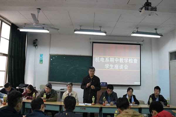 为了加强教学管理,提高教学质量,改进教学服务工作,我系于11月4日16:00在主楼413召开机电系期中教学检查学生座谈会。院教学专家葛长路教授,机电系主任黄嘉兴、副主任魏超,系教务秘书文丽芬、罗静老师,系学工办张子千、毛锐、周雨曦老师,系教研室张辉、崔吉、王水林、丁艳、梁斌老师出席本次会议,各班学生代表参加本次会议。