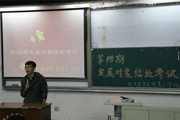 11月15日19:00机电系党站在主东二举行“第48期高党结业考试”。全体高党参加了本次考试,党站副站长崔鹏及纪检部全体成员进行监考。