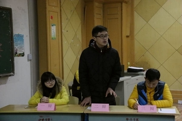 11月25日19:00机电系第三届新生辩论赛在主西一拉开序幕。开幕式以表演赛形式进行,由13级李恒祺、刘坤、刘世凯作为正方选手对阵由14级徐加冕、卢星宇、徐幸组成的反方。