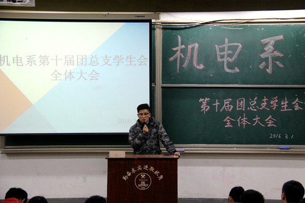 3月1日21:00,机电系在主南二召开第十届团总支学生会全体大会。系学生会指导老师周雨曦出席会议,团总支副书记王振国,学生会主席黄宇,副主席程皓、姜靖宇、潘成、王莹莹、徐幸、各部门部长及学生会全体干事参加本次会议。