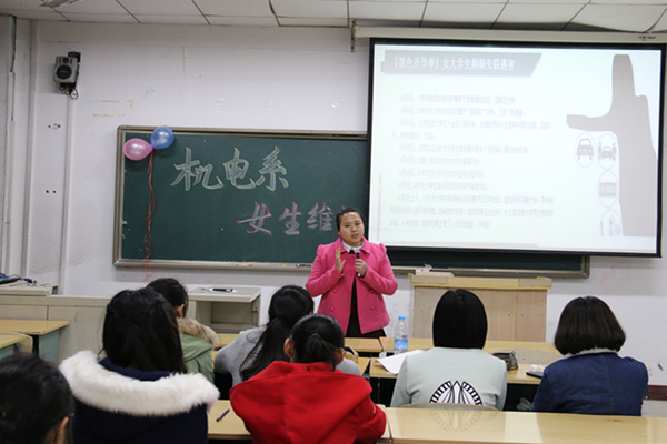 为提高女大学生的安全防范意识,增强女生自救自护能力,提高女生的辨识能力 。机电系于4月6日19:30在主楼207召开女生维权知识讲座。 学生会副主席王莹莹主持了本次讲座,大一、大二全体女生参加本次讲座。