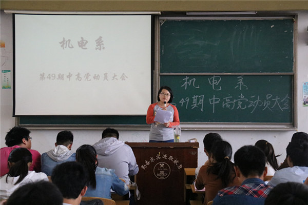 本次动员大会,不仅体现了机电系中高党的素质与涵养,更体现了自觉向党组织靠拢的明确认知和觉悟。希望中高党从基础做好,不断充实自己,以党的宗旨为原则,严格要求自己,争取早日成为一名党员。