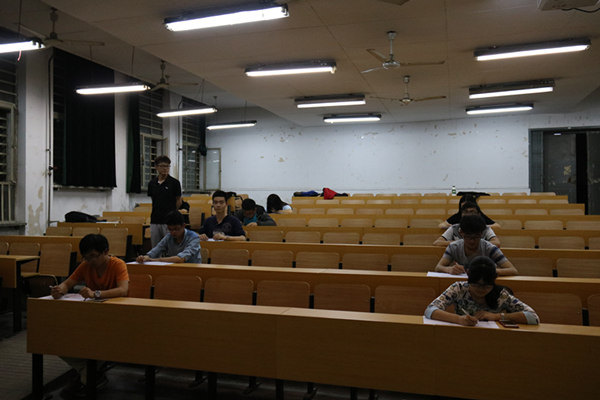 参加笔试的共30支队伍,每队派出一位代表参加考试,晚七点同学们准时到达考场,他们井然有序地找到座位并耐心的等待考试。笔试试题共分为选择题,填空题,判断题和简答题四大部分。在考试过程中,选手们沉着冷静,认真答题。答题结束后,同学们陆续交卷。生活部与实践部部长和干事对卷子进行批改。最终,十五支队伍脱颖而出,进入随后的初赛。