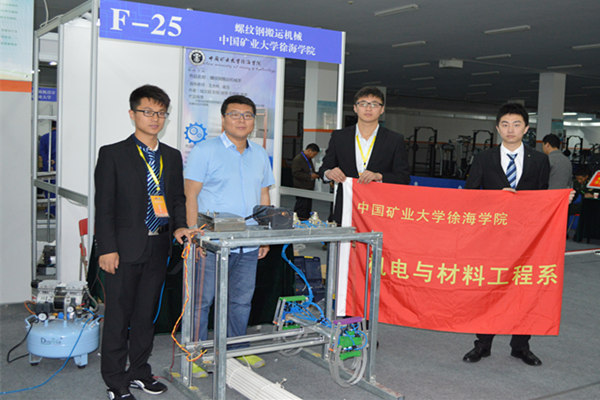 本次大赛主题为“服务社会——高效、便利、个性化”,内容为“钱币的分类、清点、整理机械装置;不同材质、形状和尺寸商品的包装机械装置; 商品载运及助力机械装置”。所有参赛作品分成8组,分别进行参赛作品展示、分组答辩等展示交流环节。在各队指导老师的精心组织,悉心指导下,我院参赛队员结合专业知识,做到了将课堂所学在实际工程中的灵活运用。在答辩的过程中,对于评委提出的问题能够做出深入的回答,得到了现场评委及其他院校的老师和同学的一致肯定。我系同学利用课余时间积极准备,现场发挥稳定,经过紧张角逐,我院机电系的参赛学子获得了可喜的成绩,其中朱瑞志、赵宇驰、董林、徐同强四名同学的“流水线自动拆叠垛机”凭借出色表现荣获省二等奖,钱文超、彭聪、徐幸、石明顺、路展的“螺纹钢搬运机械手”也以其成熟的搬运整理功能获得省三等奖。此次成绩的取得,离不开学生的努力付出,离不开指导老师的倾心倾力,更离不开学校创新氛围的营造和育人平台的支持。