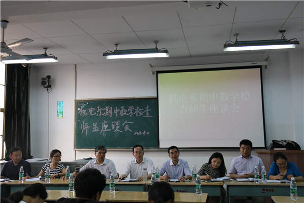 为了落实学院精神,提高教学质量,改进教学服务工作,机电系于5月11日17:00在主楼413召开机电系期中教学检查师生座谈会。中国矿业大学徐海学院副院长应鹏展,院教务处副处长沈瑜,院学工处许新富老师,院后勤处徐芬芬老师,机电系主任黄嘉兴、副主任魏超,系学工办主任金蕊,系教务秘书文丽芬,系学工办魏巍、张子千、毛锐、周雨曦老师出席本次会议,全系各班学生代表参加本次会议。