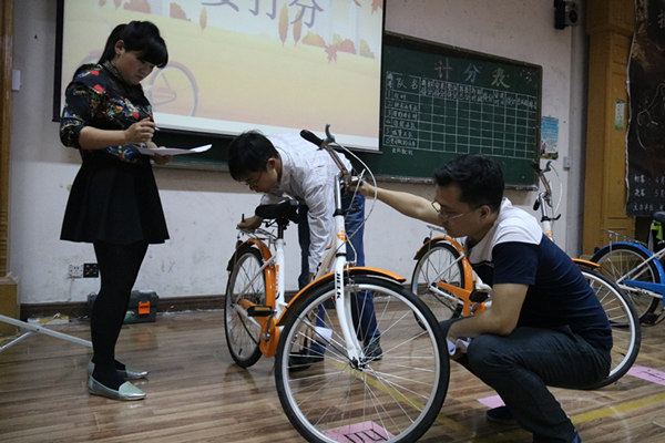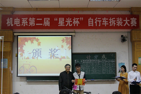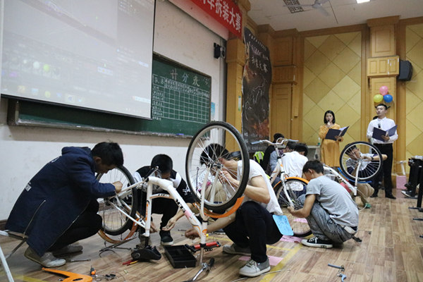 拆装亦是创造,疯狂创造奇迹。5月14日14:30机电系第二届“星光杯”自行车拆装大赛在主西一隆重举办。出席此次大赛的嘉宾有机电系主任黄嘉兴,副主任魏超,学工办主任金蕊,辅导员魏巍、张子千、毛锐、周雨曦老师,机电系专业老师张博、丁艳、上官云娟以及各系主席团代表。机电系专业老师杨博、崔吉、王水林、梁斌、仝军令担任比赛评委。