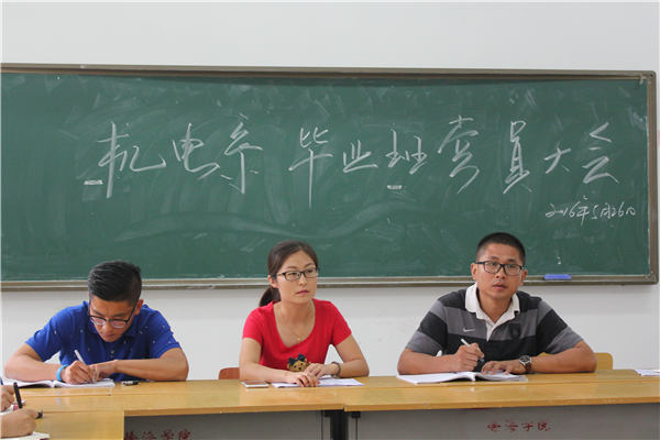 5月26日14:30,机电系在教一305召开2016届毕业班党员大会,机电系学工办主任金蕊,毕业班辅导员毛锐,周雨曦老师以及全体毕业班党员参加本次会议。