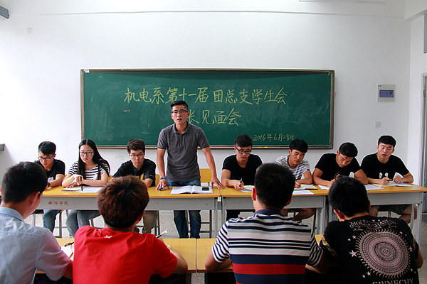 机电系于6月28日12:30在教一305召开第十一届团总支学生会部长见面会。系学生会指导老师周雨曦出席并主持此次见面会,团总支副书记李嘉华、主席徐幸、副主席陈俊、毕英梅、彭聪、陶帅、常顺顺及全体部长参加会议。