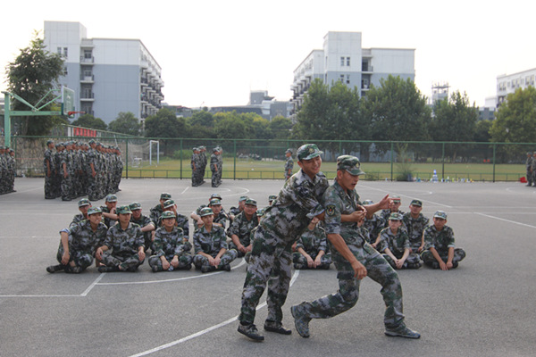 防身术是一项运用踢、打、摔、拿等武术技击方法,以制服对方,保护自己为目的的专门技术。此次的学习,在一位教官和一位同学共同配合下开展。教官从多方面多角度对各个动作进行讲解,并不时提醒同学们在自我保护时应当注意方式方法。女子防身术的学习在同学们充满坚定自信地眼神中结束。