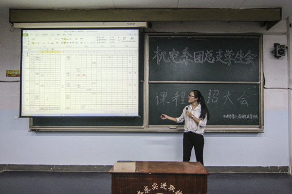 9月6日20;00,机电系新生班主任代表毕英梅同学在一南101指导16级新生负责人熟悉第一学期课程设置情况。2016级材料、能动全体新生参加了此次会议。 首先,毕英梅向大家简要介绍了大一第一学期课程:《大学英语》、《高等数学》、《大学计算机》等。随后毕英梅叮嘱同学们要努力学习,练就扎实的动手能力,为美好的大学生活奠定良好基础。 介绍会在同学们对大学学习生活的美好期望中结束。此次介绍会让新同学们对今后的学习有了更加具体的了解,有利于他们做出合理可行的规划,最终收获精彩充实的大学生活。