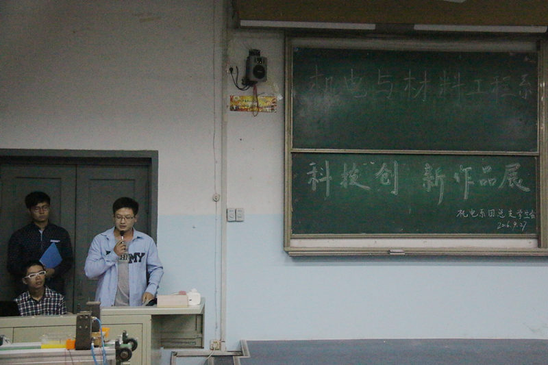 为了开展广泛的科技教育活动,激发同学们对于科技的热情,培养同学们刻苦专研,勇于创新的精神,真正做到“学以致用”。机电系于9月27日19:00举行了科技创新作品展。路展、王子龙、徐鹏飞、彭聪出席本次活动,大一新生代表参加了此次活动。