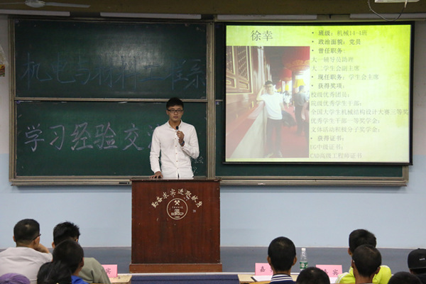 为了让大一新生尽快适应大学的学习生活,促进新老生之间的学习心得交流,机电系于9月29日19:00分别在主南一、主西二举行了学习经验交流会,优秀学生代表徐幸、邵贺、丁冬松、张习、吴金成、麻恒、马丕胤、刘慧出席此次会议,机电系全体新生参加了此次交流会。
