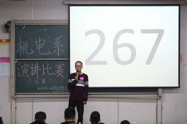 为了给同学们提供一个展现自我,提升自我的舞台和机会,机电系于10月13日19:00分别在三南5、三南6举办演讲比赛初赛。出席本次比赛的评委有院演讲比赛二等奖获得者张艺千,三等奖获得者的熊俊普;系演讲比赛二等奖获得者卞东学,三等奖获得者吴舜禹和张博。