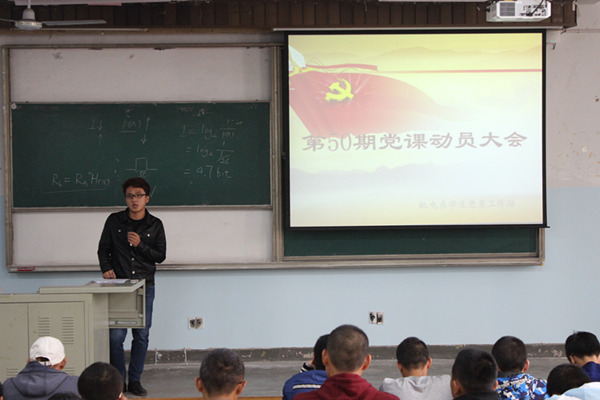 10月14号12:45,机电系党站在主东一召开第50期中高党动员大会,党站副站长杜佳明、杜泽瑞、以及全体中高党参与了本次大会。