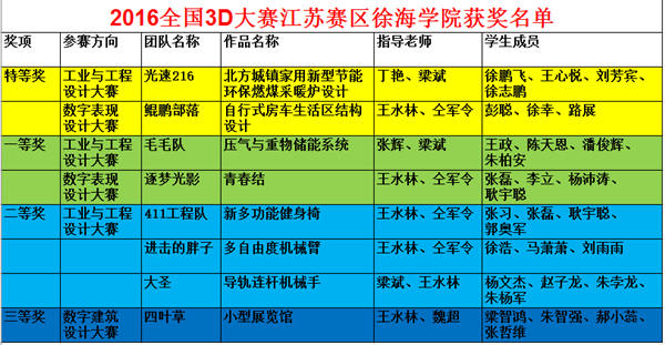 本次比赛设置了大学生组,职业组,青少年组和产业组等4个组别,大赛的主题是“发现新锐力量,寻找创客标杆!”。本次比赛采用开放自主命题的命题方式,围绕工业工程、数字表现、数字建筑、微电影、逆向设计、3D打印六个大方向设计自己的参赛作品。我系同学分别针对工业与工程设计,数字表现设计,数字建筑设计三个方向设计自己的参赛作品。在指导老师的细心指导下,利用课余时间积极准备。最后取得了可喜的成绩,提交作品的十支参赛队伍共获得8个奖项,分别为特等奖两项,一等奖两项,二等奖三项,三等奖一项。