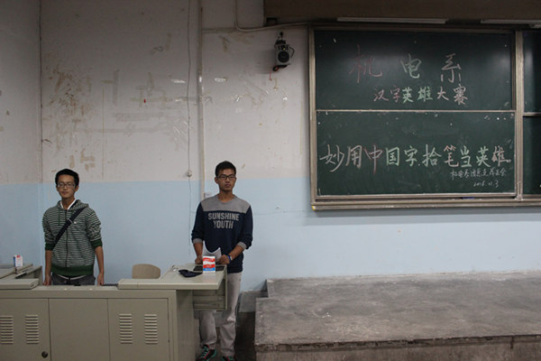 为了丰富同学们的课余生活,激发同学们对汉字的亲近感和认同感,提高学习生活中对汉字书写的积极性与主动性,11月3日19:00,机电系汉字英雄初赛于主西二拉开帷幕,各班学生代表参加了本次比赛,系学生会办公室部长与干事担任此次比赛的评委。