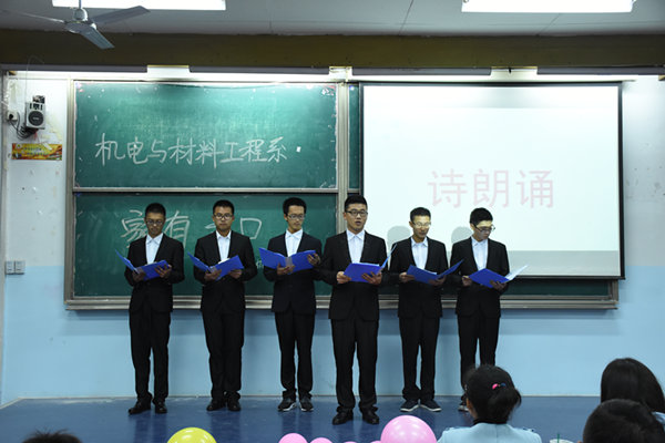 本次活动以宿舍为单位,6人为一组,共6组。参赛宿舍的成员们全心投入到比赛中,他们的作品各有千秋,其中108宿舍和302宿舍以考试作弊为题材,反映了当今大学生的作弊现象,作品结尾呼吁大学生们诚信考试,切勿投机取巧。618宿舍则向大家展示了一段“舞蹈串烧”,表现出了阳光、充满活力的大学生们的精神状态。129宿舍的表演-“热得快”风波,以宿舍日常生活为题材,提醒在校大学生遵守宿舍规章制度,做到防火,防电。207宿舍紧扣现实生活,揭示了大学生沉迷手机的现象,号召大学生们多关注现实生活,不要做“低头族”。 比赛最后,227宿舍的诗歌朗诵将比赛气氛推向高潮,他们体会诗歌中的逐字逐句,深情地表露出心中的情感,得到了评委和嘉宾的一致好评,最终以优异的成绩一举夺冠。