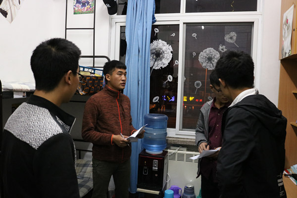 在副主席陈俊和毕英梅的带领下,分两组同时展开。一组检查学一,学十七宿舍楼,二组检查学二十四宿舍楼。检查主要是以地面卫生,物品的摆放,床铺整洁及宿舍空气等多方面进行综合评分,对未达标的宿舍进行指导与调整,对优秀学生宿舍进行表扬与夸赞,并希望优秀宿舍能够保持,不合格的宿舍能够抓紧改善。整个检查的过程中,检查人员对此非常负责,宿舍的成员也积极配合,气氛也非常融洽。在此,检查人员也希望我们能够将优秀当成一种习惯。