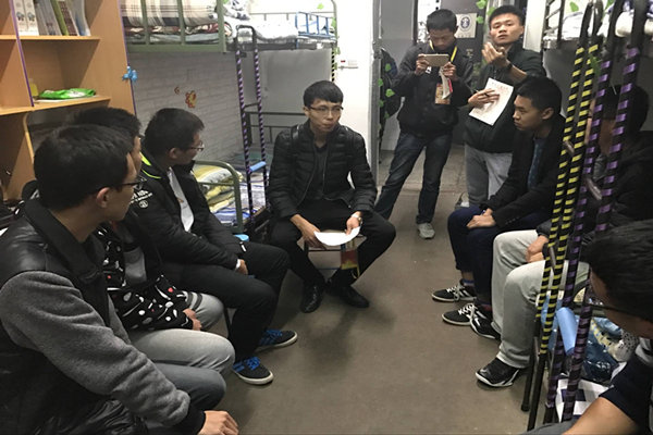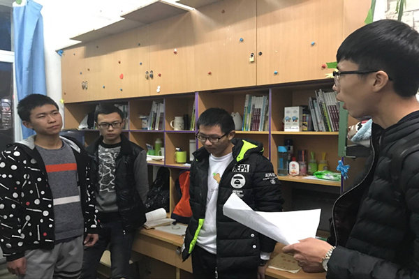为了了解大一新生课堂情况,并给予他们正确指导。机电系学生党员王科伟,黄宇,梅寒霜,朱瑞志于11月17日9点前往学一103.105.219宿舍。