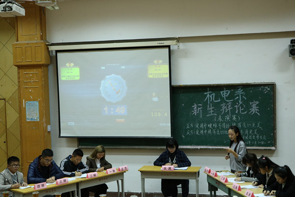 群雄舌战雄风,争锋相对辩天下。为弘扬时代精神,引导在校大学生树立正确的人生观、世界观、价值观。机电系第四届新生辩论赛于11月20日19:00在主西一正式拉开帷幕,第三届中国辩论公开赛全国季军孙雨蒙、院辩论队队长封晨、机电系团总支学生会学习部副部长于子钧以及院辩论队的成员作为特邀嘉宾出席了本次开幕式。
