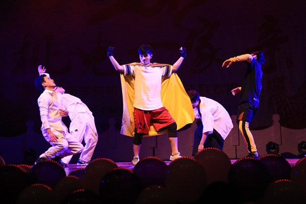 晚会在辅导员毛锐和周雨曦两位老师的激昂开场曲《不再犹豫》中拉开序幕。轻快且动感的舞蹈《我要你》,大气磅礴又情感丰富的歌曲《没离开过》,热情澎湃的街舞《精武门》,精彩纷呈的新生才艺《艺起秀》,洋溢现代气息的拉丁舞《失恋阵线联盟》,依次为观众带来了视觉和听觉上的享受。由辅导员张子千和魏巍老师表演的相声《我是语言学家》,以别具一格的表演形式和妙语连珠的台词,引发了场下观众的阵阵笑声,博得了在场师生的热烈掌声。展现青年学生积极向上、勇于奋进精神的投影剧《影像青春》,令人捧腹大笑的小品《安全演习》,传达出全体师生迎接新年的喜悦之情。精妙绝伦的魔术《Magic》将全体师生带入神奇的魔幻世界,令人回味无穷。充满活力具有创造性的健美操《疯狂小牛》,以精妙娴熟的技巧与配合博得了在场师生的热烈掌声。魏超、仝军令和梁斌三位老师带来了脍炙人口的歌曲串烧,一首首熟悉的歌曲引发了现场观众的强烈共鸣,一次次将晚会推向最高潮。机电系学生会带来的压轴舞蹈《你干嘛》以欢快激昂的旋律,极大调动了师生们的热情。最后,晚会在《相亲相爱一家人》的优美歌声中圆满落幕。