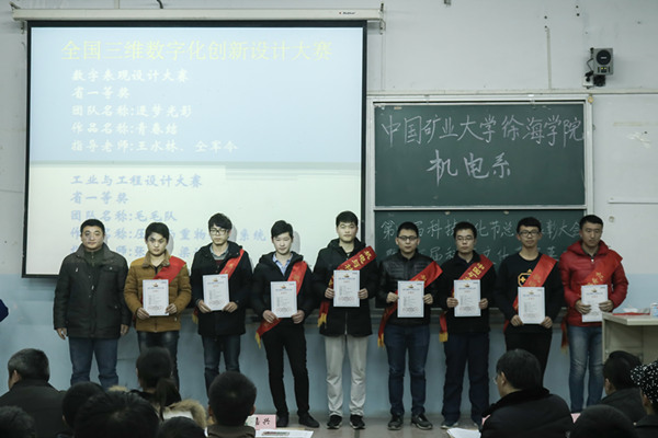 随后,魏超老师宣读表彰文件,并举行了颁奖仪式。颁奖仪式结束后,金蕊老师宣读了《关于举办机电系第五届科技文化节的通知》。紧接着,张辉、王水林、梁斌三位老师分别就节能减排大赛、3D大赛、大学生机械创新设计大赛的举办情况、参赛要求、主要环节、报名时间及日程安排等具体事项进行了逐一讲解。最后,黄嘉兴教授进行总结讲话,他肯定了老师的辛勤培育和同学们的努力成果,并结合自身经历和现实情况,号召同学们努力学习,将理论与实践结合,投入到科技创新中,真正做到学以致用。