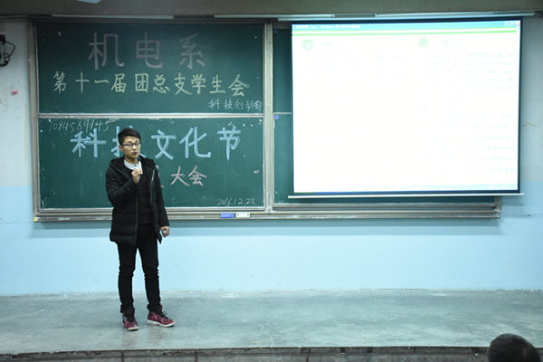 为提高学生参与科技竞赛的积极性,培养学生对于科技创新的能力与兴趣,机电系于12月28日19:00在主西二举办科技文化节动员大会,大一、大二部分同学参加此次交流会。