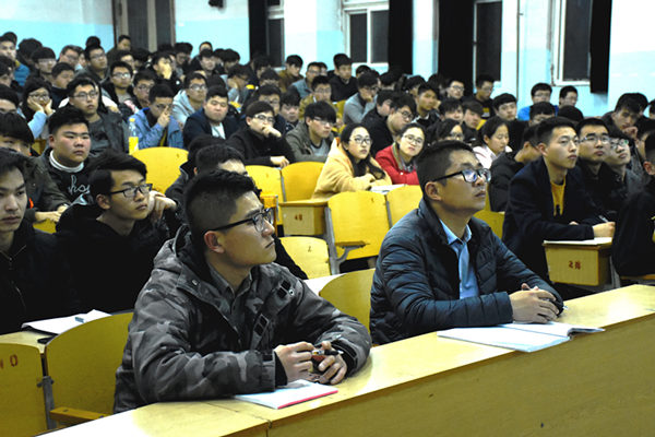 会议以视频《俺爹俺娘》的播放拉开帷幕,其旨在让同学们意识到孝顺和责任担当的重要性,同学们认真观看,深情体会。随后,黄主任结合各专业上学期期末考试成绩进行了总结,分析了学习得与失的原因,说出了教不严,师之惰。让同学们时刻记住,既不要怕吃脑力苦也不要怕吃体力苦。在未来的学习生活中,做事要认真负责。接着,黄主任就各专业选择方向做了详细的讲解并且提出了可行性的建议,以一句心到自然成结束了本次发言。最后,辅导员周老师对今晚会议进行了总结,强调了路在脚下自己走,要求同学们发扬团结上进的机电精神。