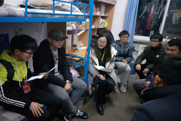 学生党员教导同学们要利用好每分每秒,不要荒废时光,要主动汲取新知识。当得知英语四级考试开始报名,他们建议要多做题,多背书,能考的证书尽量多去试试。并积极引导同学们学习要注重效率,上课认真听讲;到了宿舍也要复习一下当天学的内容,营造良好的学习氛围。