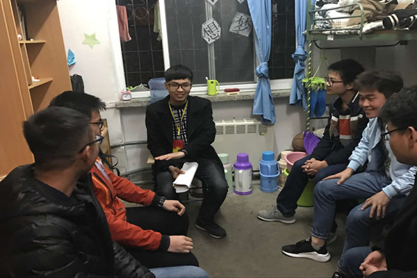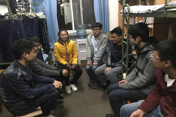 为了引导同学们营造健康的生活和学习环境,3月14日晚九点,机电系党站组织学生党员前往16级学生宿舍交流。