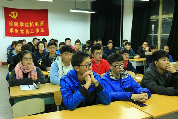 为了让同学们了解两会,正确认识党和国家的大政方针政策,机电系学生党员工作站在主楼211举办聚焦两会活动。机电系党站副站长杜泽瑞,党团部部长王锋、副部长邵贺,16级入党积极分子及班干参加了活动。
