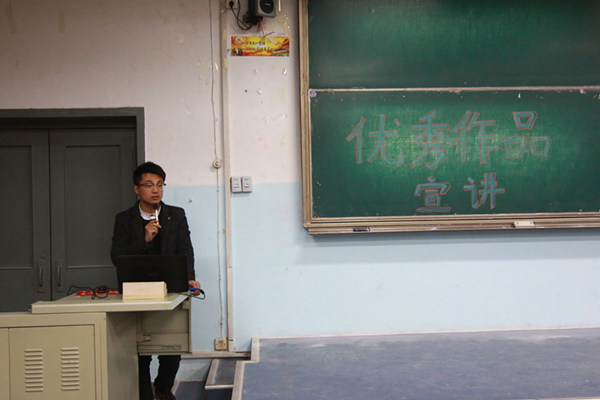 讲座伊始,彭聪主席首先就参赛同学在答辩过程中出现的问题进行了总结分析,他建议同学们要打开思路,不能局限于小的方面,也指出了作品要以简洁为主。之后向参赛同学展示了各个高校节能减排和3D大赛的作品,并向同学们详细讲解了作品的原理及作品的市场前景,旨在让同学们吸收优秀作品中所体现出的创新思路。接着通过对作品的分析,提出创作的核心是作品价值的体现,唯有作品具有价值方可算作成功。最后,彭聪主席向同学们介绍了了解节能减排与3D大赛的途径,讲座在同学们的掌声中圆满结束。