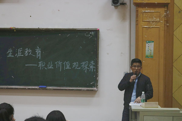 为了帮助同学们明确职业价值观,近日,机电系于主西一举办职业生涯教育活动,机电系辅导员周雨曦老师出席本次活动,16级材料和能动专业全体同学参加本次活动。 活动伊始,周老师首先强调了规划职业生涯的必要性,要求同学们制定并细化目标,让每位同学积极思考就业必备的能力。随后,同学们在周老师的指导下进行职业测试,列出职业特征并进行评分,找出最适合自己的五个职业。 本次活动的开展,使同学们明确了自己的目标,认真思考了今后的路该怎么走,相信同学们会有一个更好的的明天。