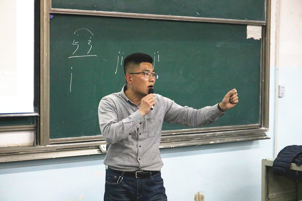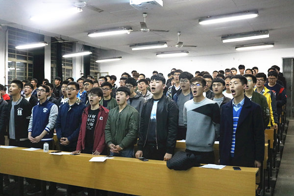 训练接近两个小时,周老师精心指导同学们唱歌时的呼吸技巧并带着同学们熟悉歌词。训练中周老师找出同学们配合尚不到位的关键部位并对之加以反复练习,同学们积极配合,不断体会,负责人适时加以鼓励,大家热情高涨,同时要求我们相互之间配合得更加默契,跟随着激昂的旋律,不断颂出愈发雄壮动听的歌声。