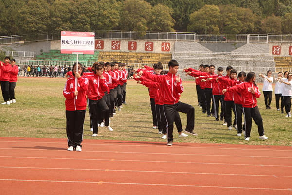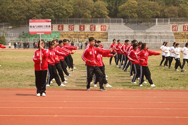 田径场上,我系选手身着红色运动装,下配黑色运动裤,他们精神饱满,整装待发。伴随着舒缓的音乐响起,紧张有序的比赛正式开始。比赛中,我系同学动作整齐划一,连贯的招式、流畅的动作体现出他们的自信。他们秉承着机电精神,齐心协力,为机电系争取荣誉。最后在大家的共同拼搏下,我系取得了第二名的好成绩。