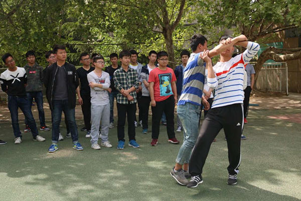 活动中,退伍军人为同学们介绍了军人的日常训练及部队生活,让同学们了解部队生活的同时,也感受到了部队训练的刻苦。随后退伍军人和同学们展开了互动,教授同学们几个基础的部队训练动作和简单的防身技巧,同学们也都非常的投入,学习部队那种不服输的精神。