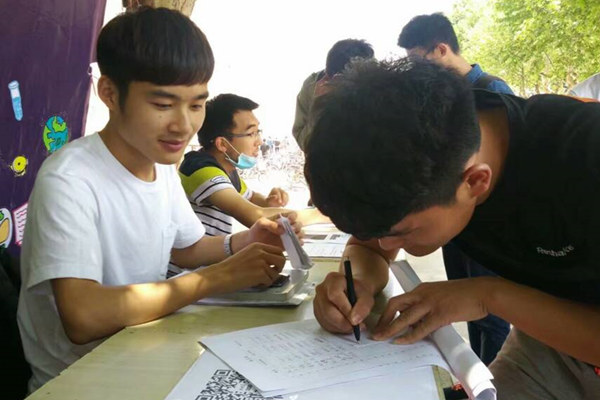 5月9日12:00,学生会工作人员在西北民族餐厅前主干道开展21天课堂“无机”挑战赛活动的报名工作。活动现场氛围十分火热,前来报名的同学人山人海。本次活动报名方式分为两种,即网络报名和现场报名;现场报名需同学们自己本人到场签字确认,报名成功后的同学用自己的安卓或苹果手机下载相应的360省电王或电池医生软件。活动规则是:挑战者需在上课时坚持不玩手机,上课前用下载的软件截取电量显示图,下课再截取一次,通过比较两次电量使用情况来确定是否使用手机,若电量没有变化则表示当天挑战成功,而一旦玩手机,即挑战失败。直到坚持的时间达到21天,形成习惯,挑战成功。