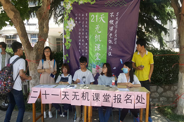 为让同学们远离手机,提高同学们的学习效率,培养同学们养成良好的学习习惯。机电系学生会于5月9日开始组织开展21天课堂“无机”挑战赛活动。