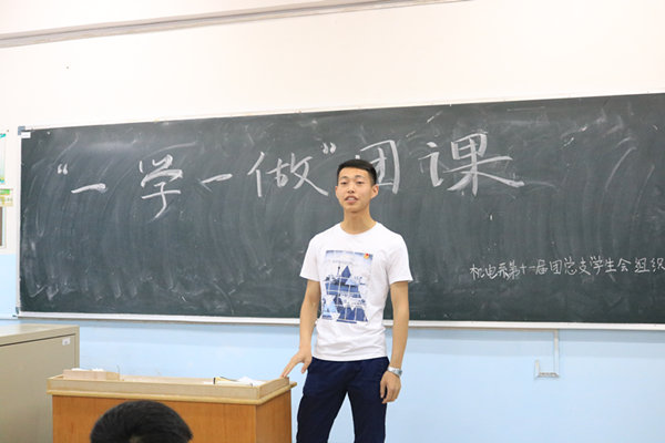 为积极响应团中央号召,切实开展“一学一做”教育实践,5月21日19:00,机电系在一南二401、404举办了以“一学一做”为主题的团课。本次团课由组织部部长孙晨主讲,全班所有团员均参与到团课的学习中,会场气氛十分活跃。