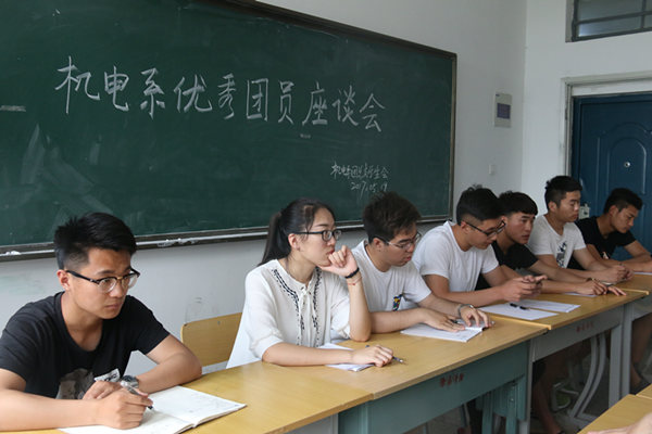 为了增强团员的先进性和荣誉感,机电系于5月18日14:00在教一305召开优秀团员座谈会。机电系团总支学生会主席团及全体部长参加了此次会议。