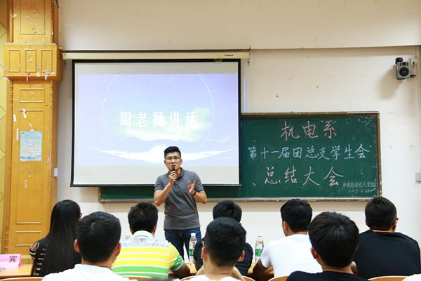 6月14日18:30,机电系在主西一召开第十一届团总支学生会工作总结大会。系学生会指导老师周雨曦、学生会全体成员参加本次会议。
