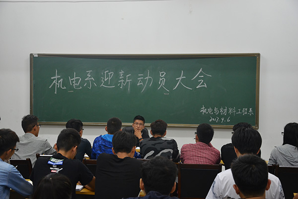 为了高效、有序的做好2017级迎新工作,机电系于9月6日19:00在教一305召开机电系2017级迎新动员大会。机电系学生会指导老师周雨曦老师,机电系团总支学生会主席团、机电系学生党员工作站站长及机电系学生会和党站的全体部长出席了本次会议。
