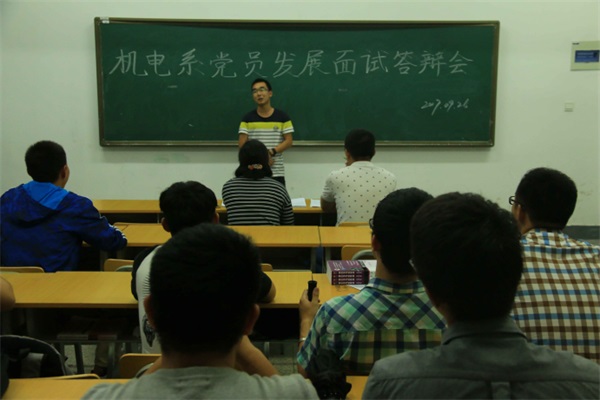 9月26日机电系在教一305举行学生党员发展面试答辩会,系学工办主任金蕊老师,辅导员张子千老师、毛锐老师和14、15级发展对象参加本次答辩会。