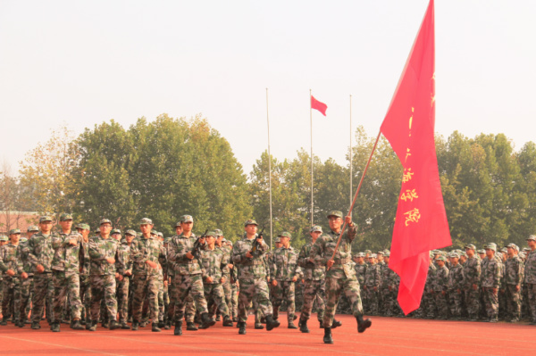 机电系方阵气宇轩昂、整齐划一,他们将铁血的斗志和拼搏的精神注入铮铮铁骨之中。挺拔的身姿挥洒出机电的青春热血。同学们目光坚定有力、军姿挺拔、口号声冲破云霄,军体拳方阵精彩表演,气势威武,口号嘹亮,展现出坚韧不拔的战斗作风;英姿飒爽的女子匕首操方阵用别样的风采展示了巾帼之美。随后,教官进行军事素质拓展表演,赢得了新生们的阵阵掌声。表彰大会上,机电系凭借追求卓越,勇往直前的团结精神赢得了本次军训的“军训训练先进集体”称号。最后,17级全体新生进行成人礼宣誓,院领导发表讲话,对17级新生在军训和军训汇报的表现给予充分肯定,表示军训给新生带来的变化和影响将使他们终身受益。