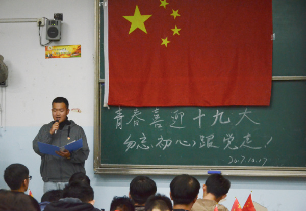 为了响应党的十九大的召开,树立当代大学生的榜样楷模,机电系于10月17日19:30于主北四举行了《青春喜迎十九大,勿忘初心跟党走》观影大会。机电系团总支学生会组织部三位部长和16级全体学生干部参加此次活动。