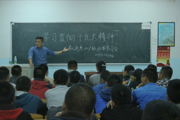 为了贯彻落实十九大精神,机电系于10月24日20:00在一南104召开机电系2017级班委学习会。机电系17级辅导员周雨曦老师出席本次会议,机电系2017级全体班委参加此次会议。