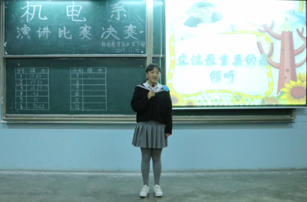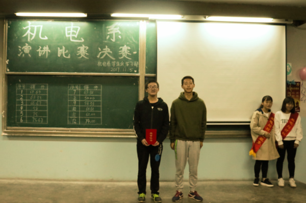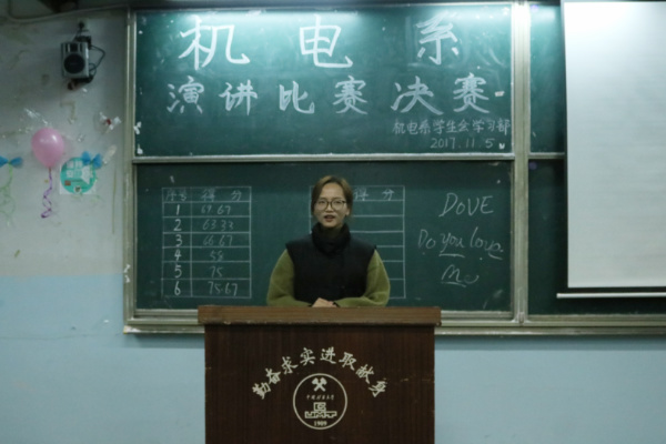 为了展示大学生深厚的演讲功底,彰显积极向上的良好精神风貌,机电系于11月5日在主西二举办17级新生演讲比赛决赛。机电系团总支副书记孙晨、机电系学生会副主席吴亮、院学习部副主任熊贤艳、机电系学生会学习部部长刘颜清作为嘉宾出席本次比赛,担任本次比赛的评委为院16级演讲比赛获奖者刘怡萍、杜旭朝、王宇、邵泽、樊昊。
