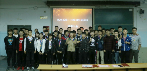 大会伊始,主席和部长为各位获奖运动员颁发奖状和奖牌。紧接着,优秀运动员代表陈俊学长和渠苏腾发表讲话,表达出了机电女子不服输,机电男儿自刚强的精神状态。最后孟赛学长对此次运动会进行总结,他肯定了运动员们所取得的成绩,对运动会期间运动员们表现出的艰苦奋斗、力争上游的精神提出了表扬,并希望机电系可以把这种精神传承下去。